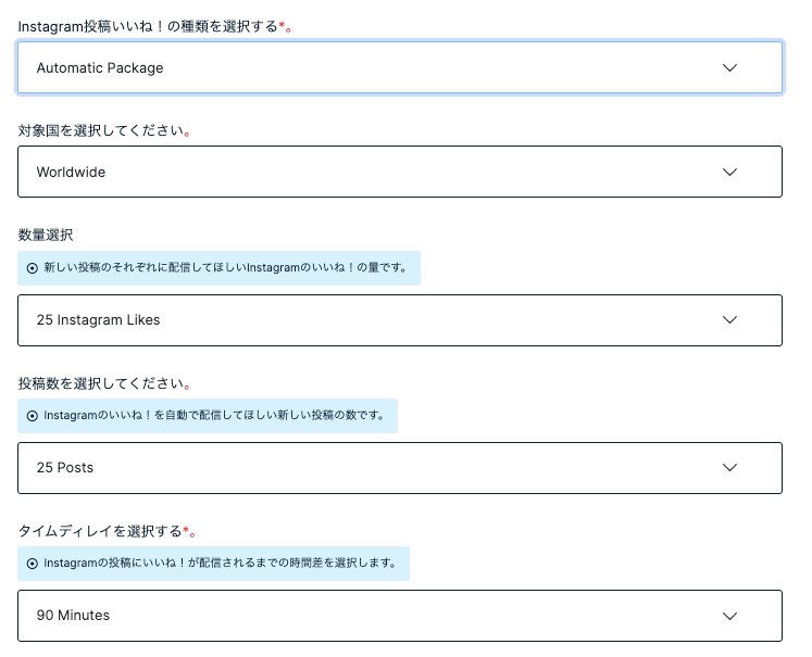 増やしてくれる徐放型のやりかたです。「インスタのいいね増加」サービスをご覧下さい。以下の様に選択できます。